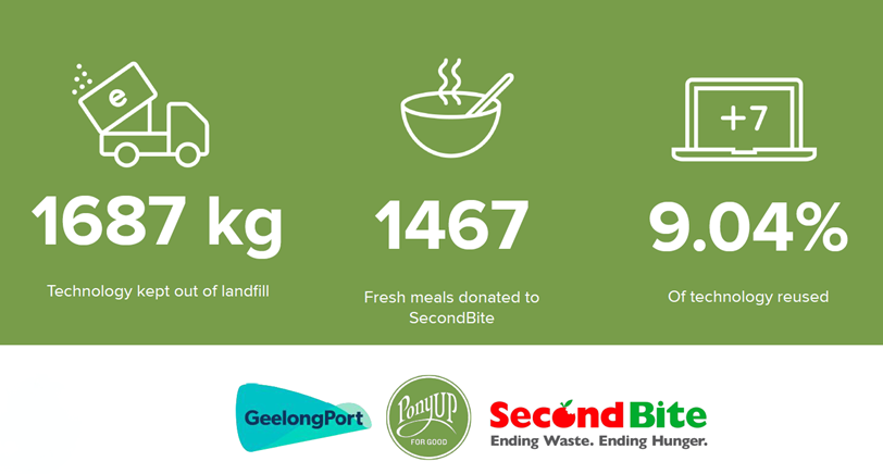 Through a partnership with social enterprise PonyUp for Good, GeelongPort has delivered a powerful combination of environmental and social impact, turning old technology into meals for Australians facing food insecurity.